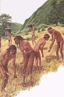 Aan het eind van de steentijd vond een belangrijke verandering plaats: de uitvinding van de landbouw.In deze les vertelt meester Henk over een belangrijke verandering in de manier waarop de mensen in de steentijd leefden. De uitvinding van de landbouw bracht deze enorme verandering. Rond 5300 v. Chr. kwam de landbouw ook in Nederland. Toen kwamen de eerste boeren in Zuid-Limburg. Meester Henk!! Waar kwamen de eerste boeren vandaan? 12.000 jaar geleden leefden er jagers/verzamelaars in het Midden-Oosten. Zij jaagden op wilde dieren en verzamelden granen, noten en vruchten. Deze mensen ontdekten dat als je wilde granen in een akker zaait en het goed verzorgt (onkruid wieden, water geven), je niet meer naar de granen hoeft te zoeken! Het graan staat in een akker bij je huis. Dat lukte niet alleen met granen maar ook met andere planten als erwten en bonen. Zo ontstond de akkerbouw. De mensen hadden de planten en dieren waar zij vroeger naar moesten zoeken en jagen om zich heen verzameld. Daarom hoefden zij ook niet meer rond te trekken en bleven zij voor een langere tijd op dezelfde plek wonen. Meester Henk!! Hoe leefden de boeren? De boeren trokken niet meer rond zoals de bosjagers en rendierjagers maar leefden voor een langere tijd op dezelfde plaats. Zij leefden in dorpjes. Eerst zochten zij een gunstig plekje in de buurt van stromend water. Dan kapten zij met stenen bijlen een open plek in het bos. Van het hout bouwden ze hun boerderijen.