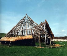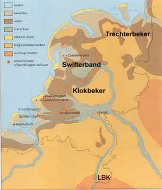 Meester Henk!! Hoe zagen de boerderijen eruit? De boeren maakten van de gekapte bomen een stevige houten geraamte. Van gevlochten takken maakte men lage muren. De muren werden dicht gesmeerd met leem (klei). Het dak was van riet. De boerderijen stonden in één rij. Tussen de boerderijen was een erf van ruim 30 meter. In een dorp stonden 3 tot 10 boerderijen. Archeologen denken dat er ongeveer 10 mensen in één boerderij woonden. In een dorp leefden dus 30 tot 100 mensen. Naast de landbouw verzamelden de boeren vruchten, noten en knollen in het bos. Ook jaagde en viste men nog veel. Meester Henk!! Waren er verschillende boeren? Jazeker. Archeologen hebben vier verschillende boerenculturen terug gevonden. Op de kaart van Nederland vind je de verschillende boerenculturen. Klik erop en je vindt meer informatie.