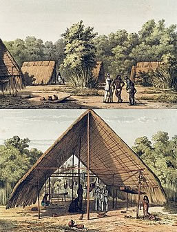 Meester Henk! Wat deden de mannen? De mannen jaagden en visten. Dat gebeurde voornamelijk met pijl en boog. Voor verschillende dieren gebruikten zij verschillende pijlpunten. In speciale kokertjes droegen zij gifpijlen. Dit waren pijlen ingesmeerd met de gif curare. De jagers gebruikten tijdens de jacht ook jachthonden. Omdat de huizen maar een aantal jaren werden bewoond, waren de huizen vaak vrij eenvoudig. Zij plaatsten enkele stukken gebogen hout in de grond. Daarop werd een dak gelegd. De dak bestond uit stroken palmhout en bedekt met bladeren van de bananenboom. De bladeren waren zo goed samengevoegd dat er geen water doorheen kon. De voornaamste meubilair was de hangmat. Dat was niet alleen een slaapplaats maar ook een ligstoel. Daarnaast hadden zij gevlochten manden en draagtassen De prehistorie in Suriname eindigde met de komst van de Europeanen in de 16e eeuw. Zij legden op schrift vast wat zij aantroffen langs de Wilde Kust. Vragen over de prehistorie in Suriname? Stuur ze naar meester Henk.