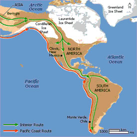 Wat gebeurde er tijdens de prehistorie in Suriname ?Het werelddeel Amerika is veel later dan Afrika, Europa en Azië bevolkt door mensen. De oudste menselijke bewoners van Amerika kwamen ongeveer 30.000 jaar geleden uit Azië. Toen zagen stammen uit Noordoost- Azië kans om over een smalle landbrug het vaste land van Alska te bereiken. Over de droge Beringstraat konden deze mensen uit Siberië naar het continent Amerika lopen. Deze eerste "Amerikanen" waren jagers/verzamelaars en zij beschikten over vuurstenen wapens en werktuigen. Zij vonden in Amerika een continent zonder mensen. Maar wel vol met wilde dieren en heel veel eetbare groenten en fruit. Kortom, een plek waar je graag woont. De jagers keerden dan ook niet terug naar Siberië maar trokken al jagend en vissend zuidwaarts. Zo verspreidden zij zich in de loop van duizenden jaren over heel Amerika. Het is niet bekend wanneer deze jagers het gebied van Suriname hebben bereikt. De oudste sporen van bewoning zijn gevonden in het zuiden van Suriname, in de Sipaliwinisavanne. Archeologen vonden daar vuurstenen pijl- en speerpunten, vuistbijlen en stenen messen. De makers hiervan leefden op de Sipaliwinisavanne tussen 10.000 en 7000 jaren geleden.