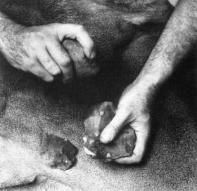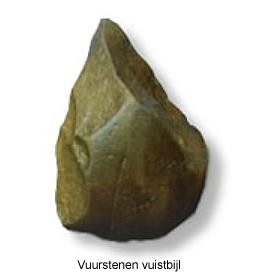 Een groot deel van de prehistorie maakten mensen wapens en gereedschap van vuursteen. In deze les vertelt meester Henk over waar vuursteen in Nederland werd gevonden en wat de mensen er van maakten.De prehistorie duurde in Nederland van ongeveer 14.000 voor Christus tot 50 voor Christus. Archeologen delen die hele lange periode op verschillende manieren in. Een veel gebruikte indeling is aan de hand van het materiaal waarvan de mensen wapens en gereedschappen maakten: Steentijd, 14.000 – 2100 voor Chr. Steen was dus voor het grootste deel van de prehistorie de belangrijkste grondstof voor het maken van wapens en gereedschappen. Dat is wel te begrijpen want steen heeft een aantal nuttige eigenschappen: het is hard, sterk en goed scherp te maken. Maar niet elke steensoort is geschikt. De prehistorische mens had uitgevonden dat vuursteen een zeer geschikte steensoort was. Vuursteen is heel hard (het is zelfs harder dan staal). Je kunt er een boom mee kappen en een olifant mee slachten!! Pijlpunten van vuursteen doorboren gemakkelijk een hert!! Maar vuursteen is ook bros en dus goed te bewerken. Meester Henk !! Wat maakten de mensen van vuursteen? Je kunt beter vragen wat ze niet van vuursteen maakten. Pijl- en speerpunten, schrapers, krombekstekers, sikkels, klingen, stekers, etc. etc. Maar het belangrijkste gereedschap was de vuistbijl. Dat was het Zwitsers zakmes van de prehistorie. Meester Henk !! Hoe bewerkte de prehistorische mens de vuursteen? Vuursteen wordt in grote brokken gevonden. Een dergelijk brok heet een vuursteenknol.